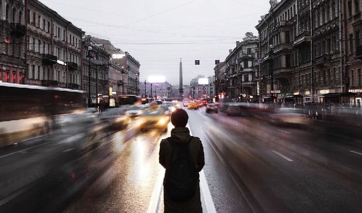 Идти вдоль поребриков. Руки в карманах.